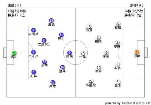 徳島サブ・GK永井、DF田向、藤田(71' 清武)、MF杉本(71' 岸本)、鈴木徳、島屋(86' 渡井)、FW押谷 京都サブ・GK清水、DF闘莉王(85' 一美)、冨田、MF重廣(75' 宮吉)、ジュニーニョ、金久保、FW中坂(64' 石櫃) www.jleague.jp 福岡・琉球相手に連勝中の徳島は、…